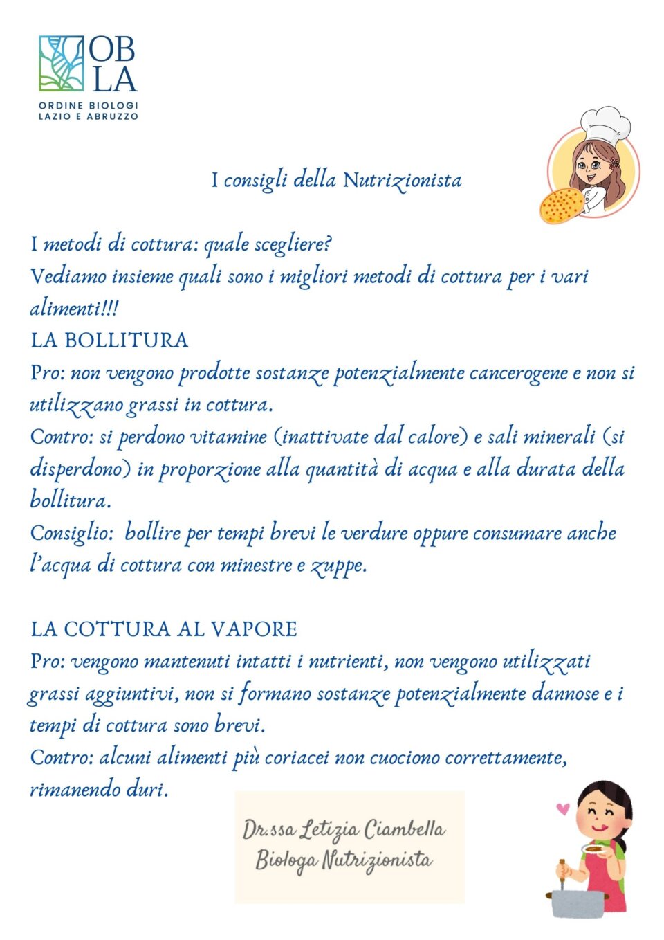 Metodi di cottura - Biologa - Nutrizionista Dottoressa Ciambella Letizia